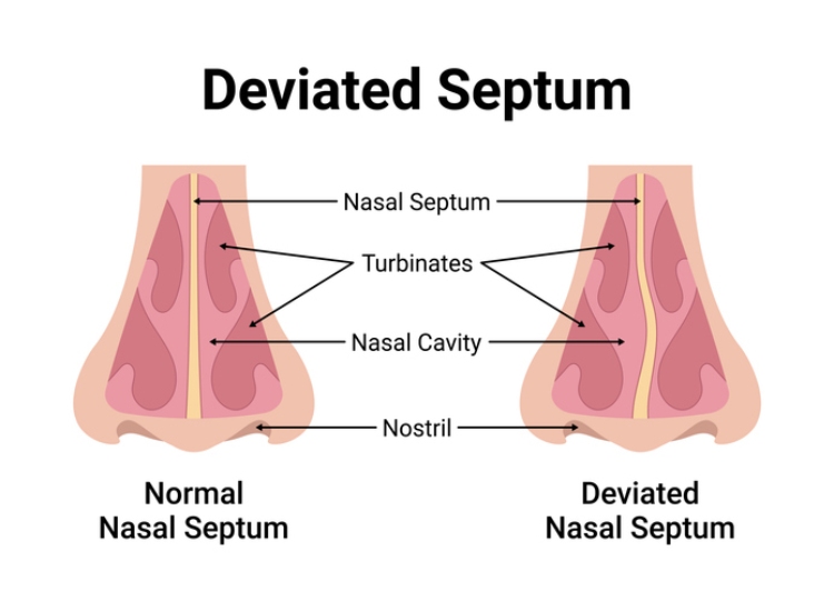 A deviated septum occurs when the thin wall between your nasal passages (the nasal septum) is misaligned or shifted to one side. This can result in one nasal passage being smaller than the other, which may lead to a range of discomforts, including difficulty breathing. A deviated septum can affect people of all ages and is commonly caused by nasal injuries, genetics, or abnormal growth during development. While slight deviations are standard, more severe cases may require medical attention to restore balance and airflow.